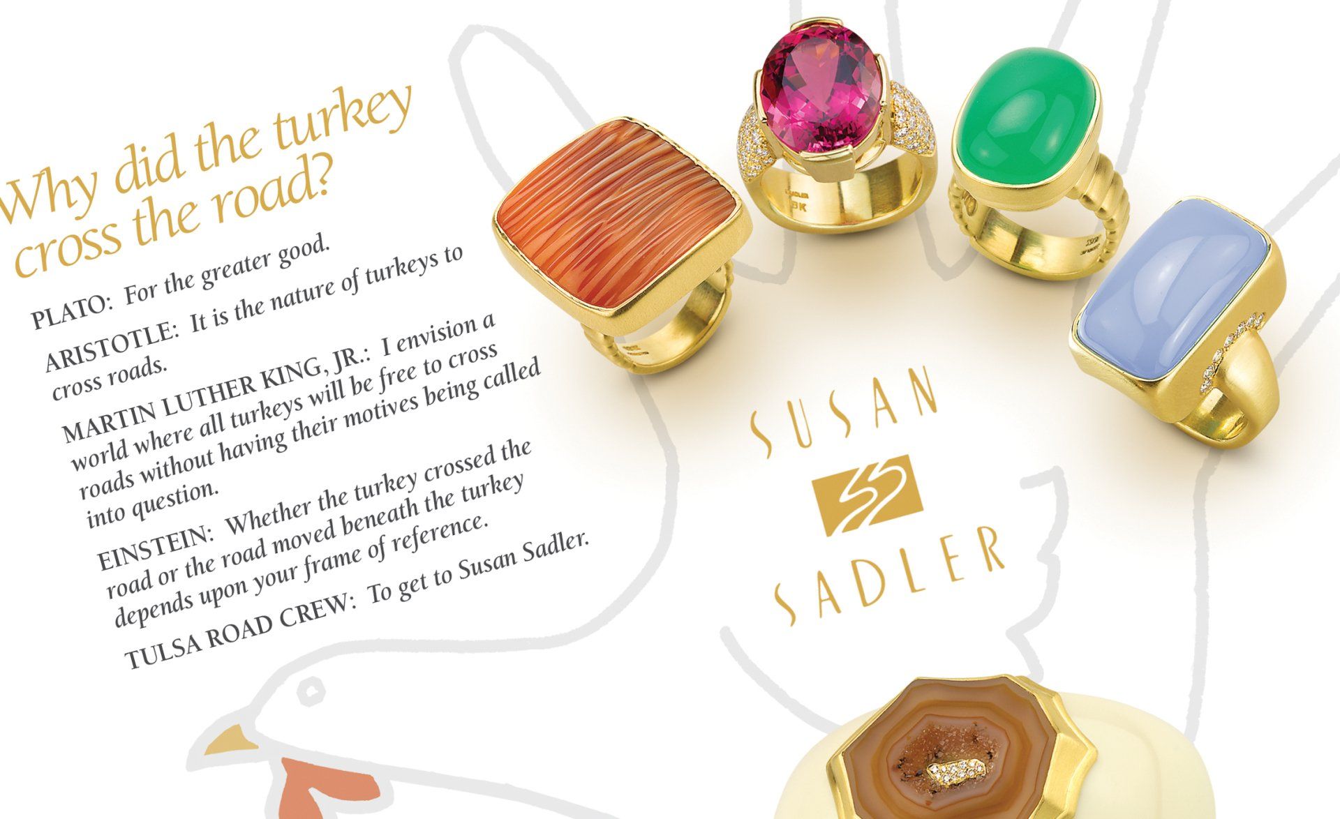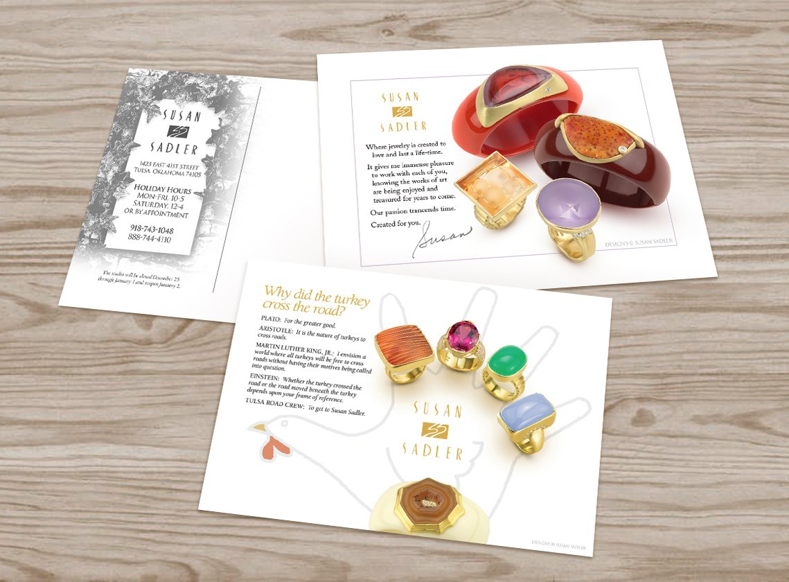 I love working with Susan! We collaborate to create unique and fun advertising pieces. I photograph her jewelry for all media including postcards, magazine ads and editorials, as well as her website.