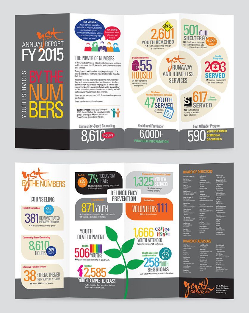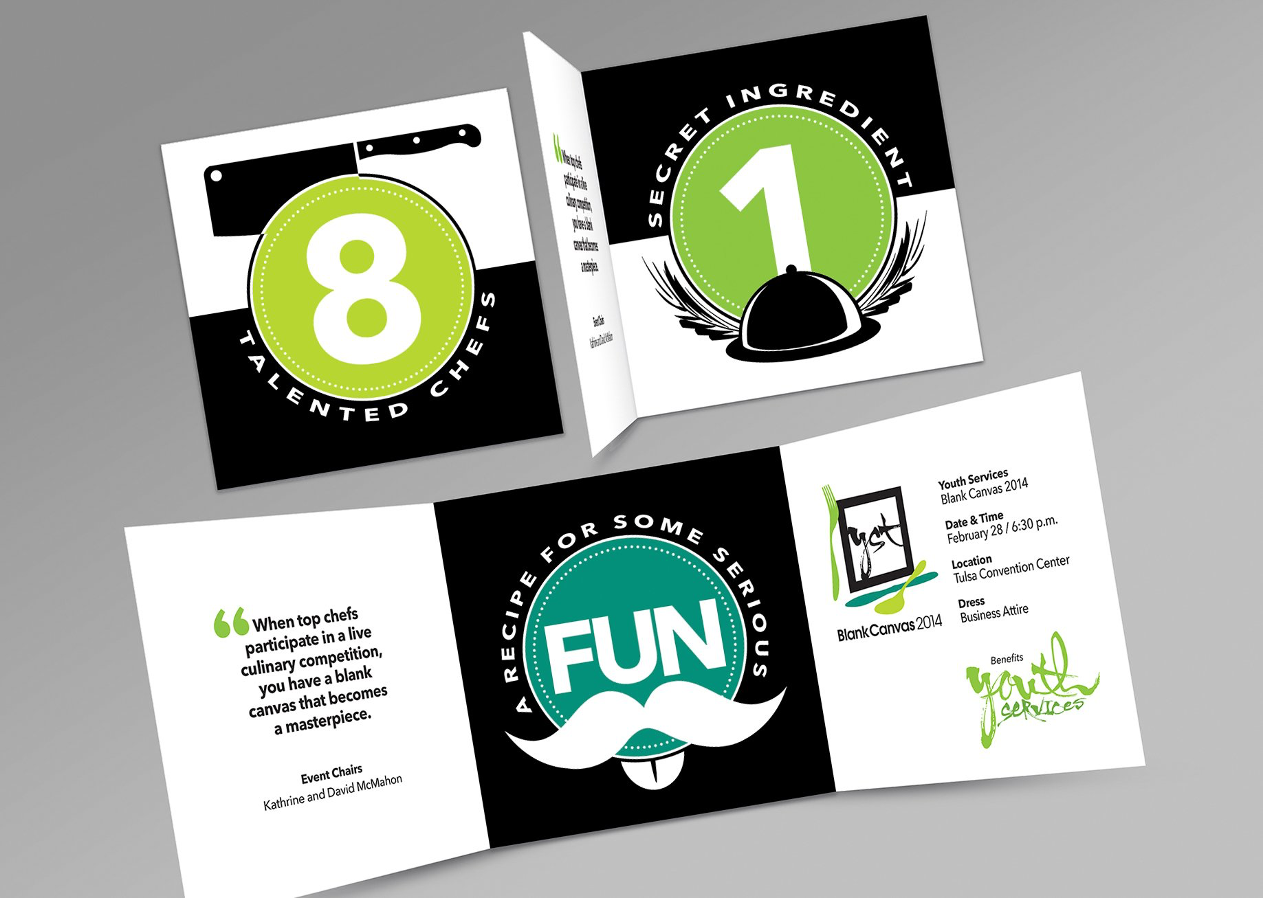 Youth Services of Tulsa helps homeless and under served youth. I've had the honor of participating in a lot of projects over many years. Brochures, newsletters, annual reports and their big fund raising event — Blank Canvas.